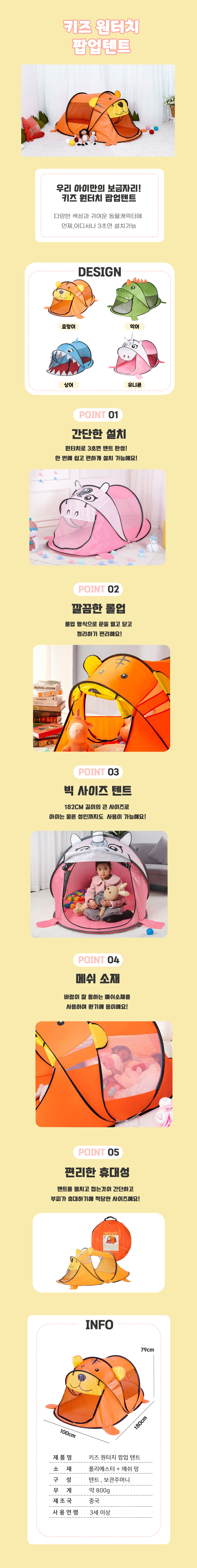 키즈 원터치 캐릭터 팝업 텐트