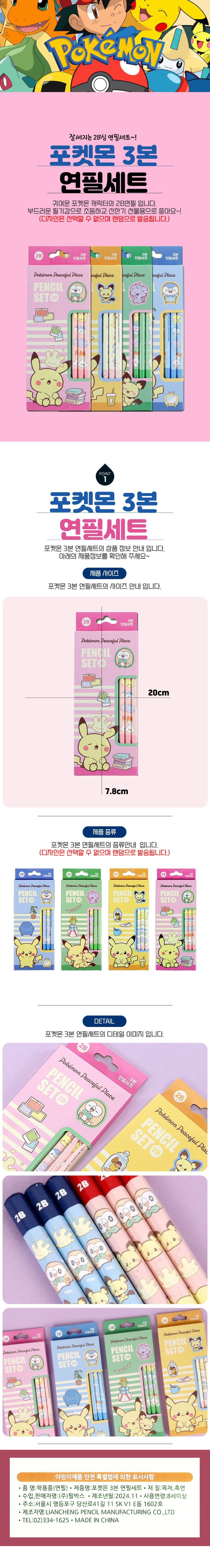 포켓몬 3본 연필세트 1p 신학기 학용품