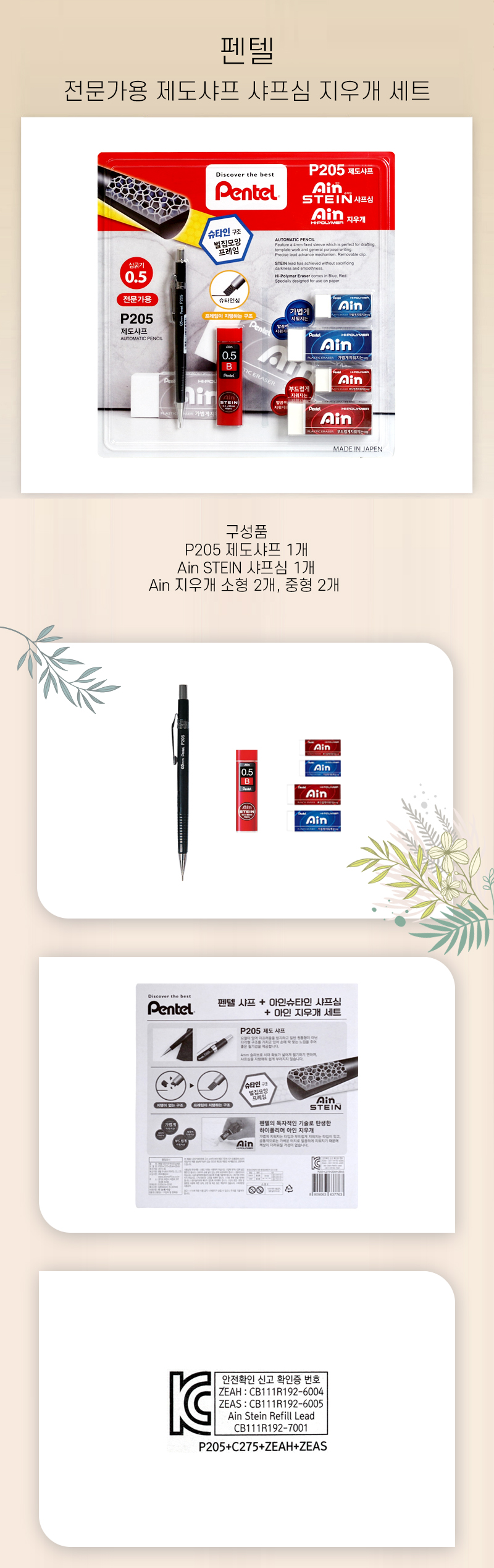 펜텔 전문가용 제도 샤프 지우개 샤프심세트