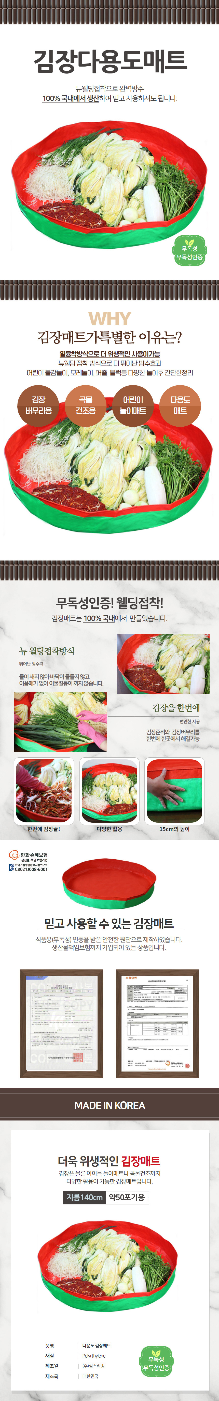 무독성 사계절 다용도 방수매트 김장매트 140cm 중형