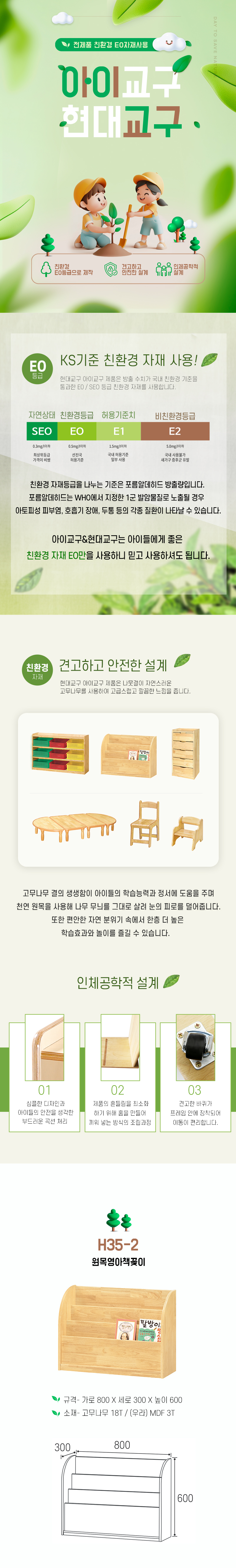 H35-2 원목 영아 책꽂이