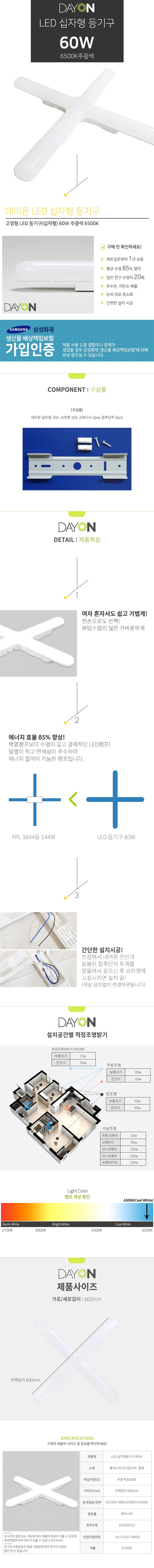 d10 데이온 LED 십자형 등기구 60W(주광색)