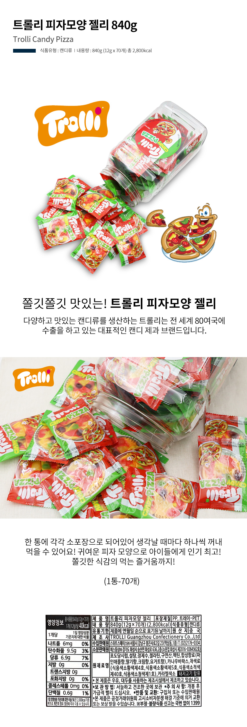 트롤리 피자모양 젤리 840g