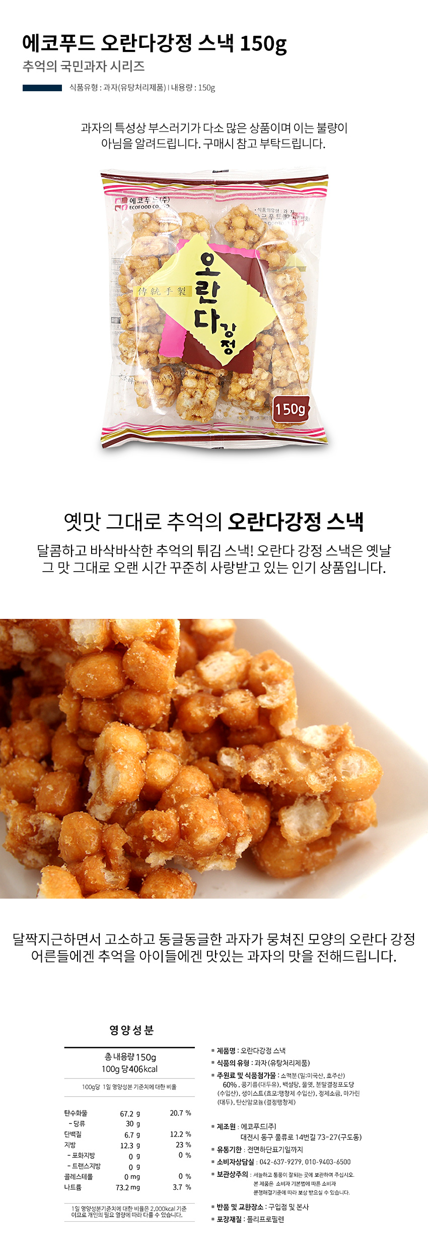 에코푸드 오란다강정 스낵 150g