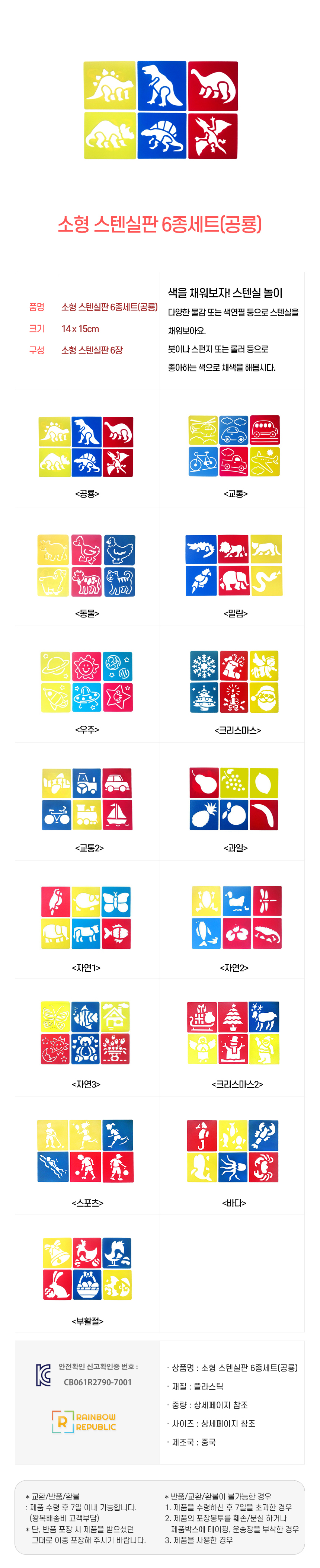 레인보우리퍼블릭 소형 스텐실판 6종 세트(공룡)