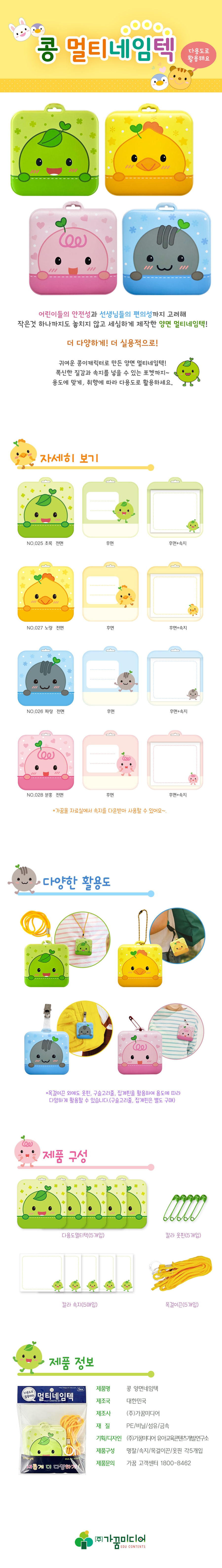 콩이 멀티네임텍 앙면이름표 앙면네임텍