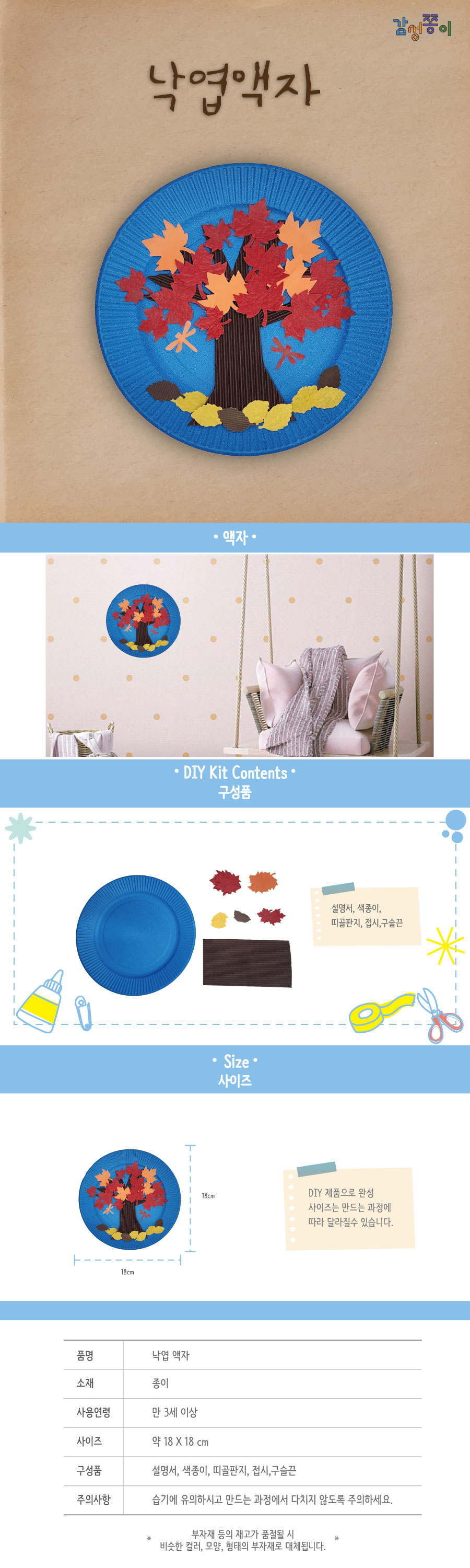 [감성쫑이] 종이접시 낙엽 나무 액자