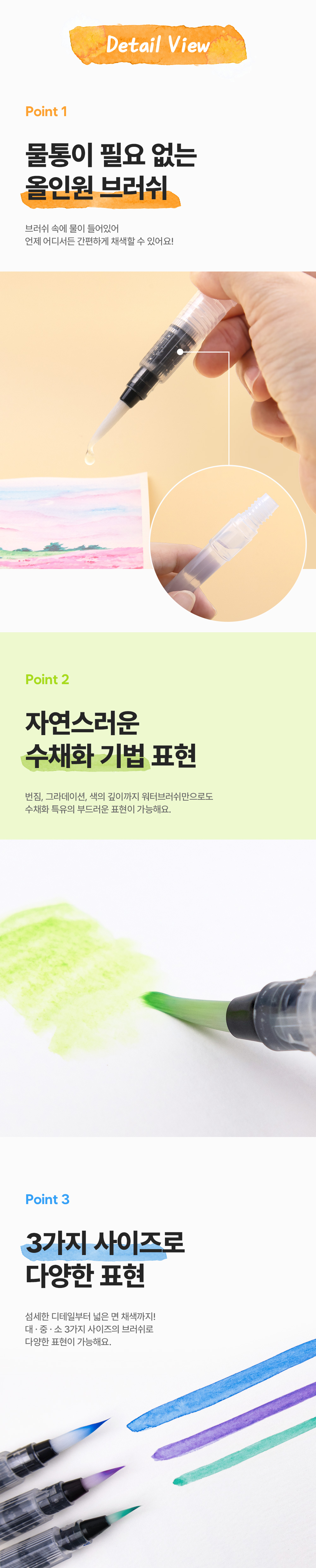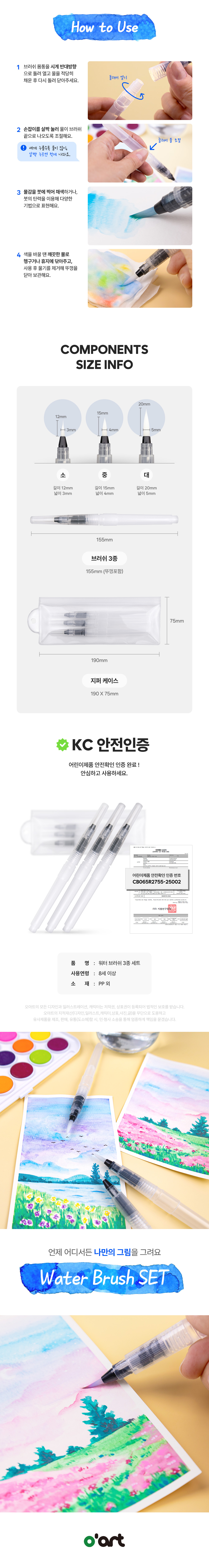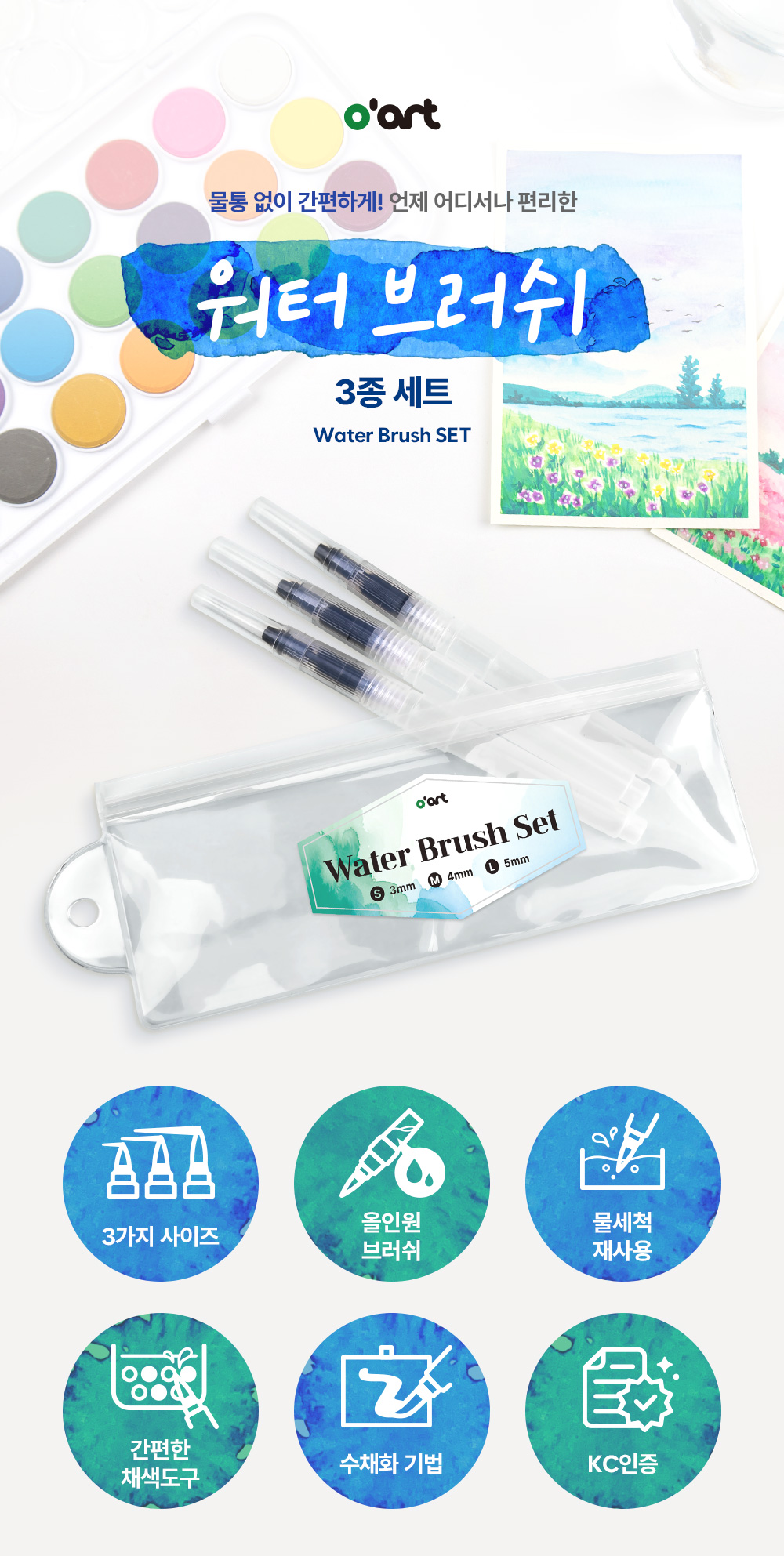 [오아트] 워터 브러쉬 3종 세트
