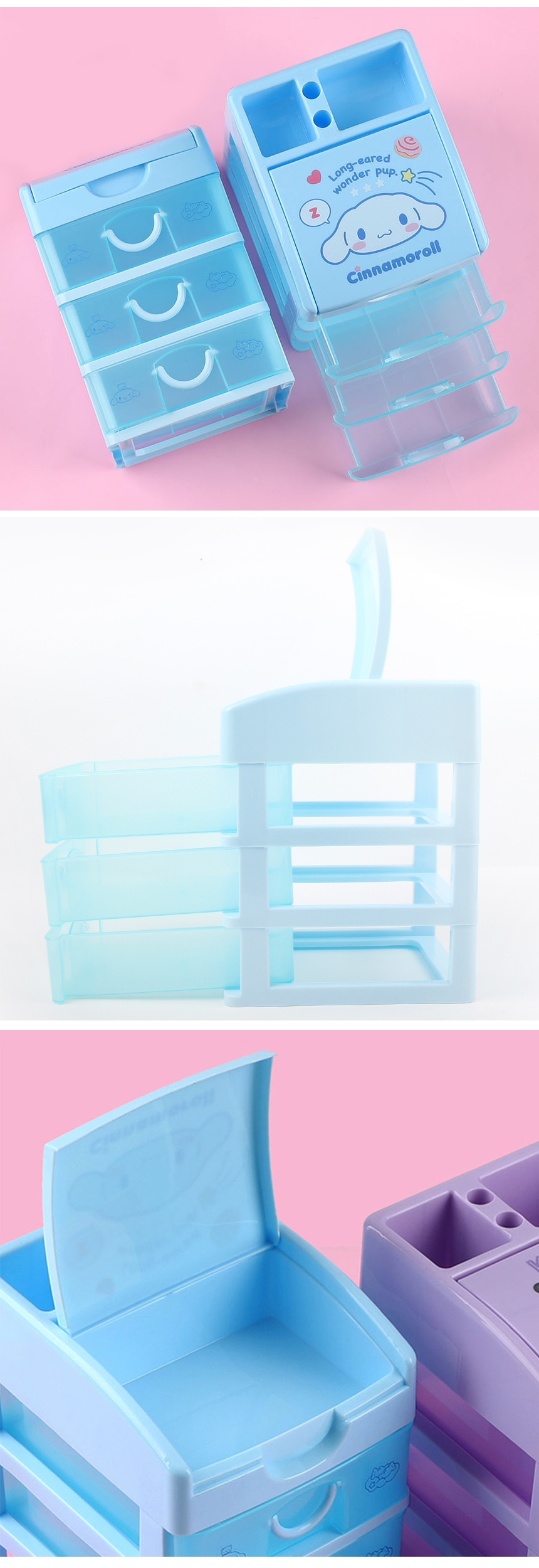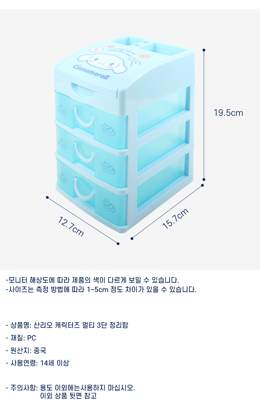 시나모롤 멀티 3단 정리함 산리오캐릭터 미니 서랍 책상서랍