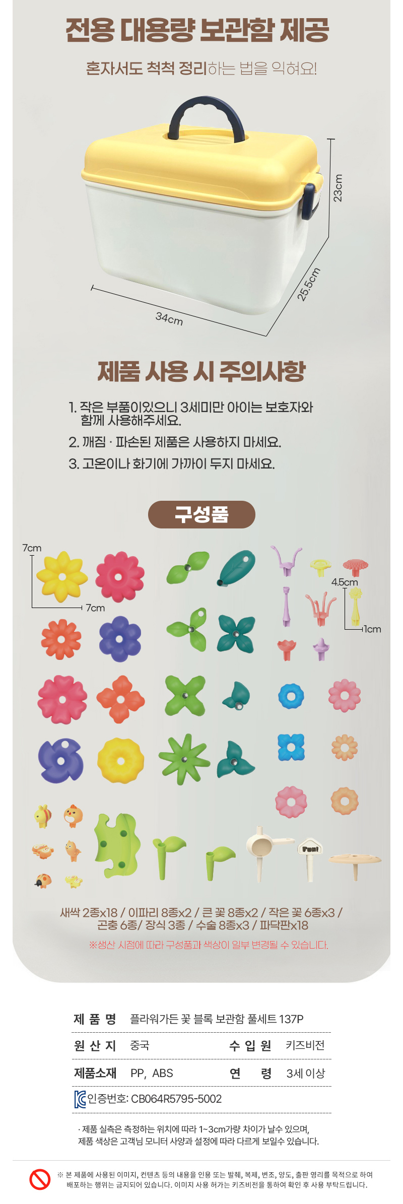 [키즈비전]플라워가든 꽃 블록 보관함 풀세트 137P