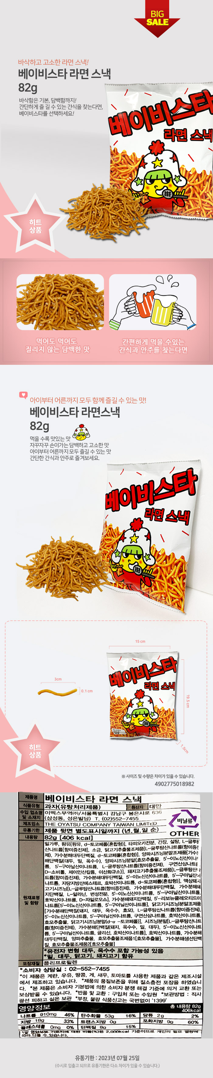 베이비스타 라면 스낵 과자 라멘 땅 82g