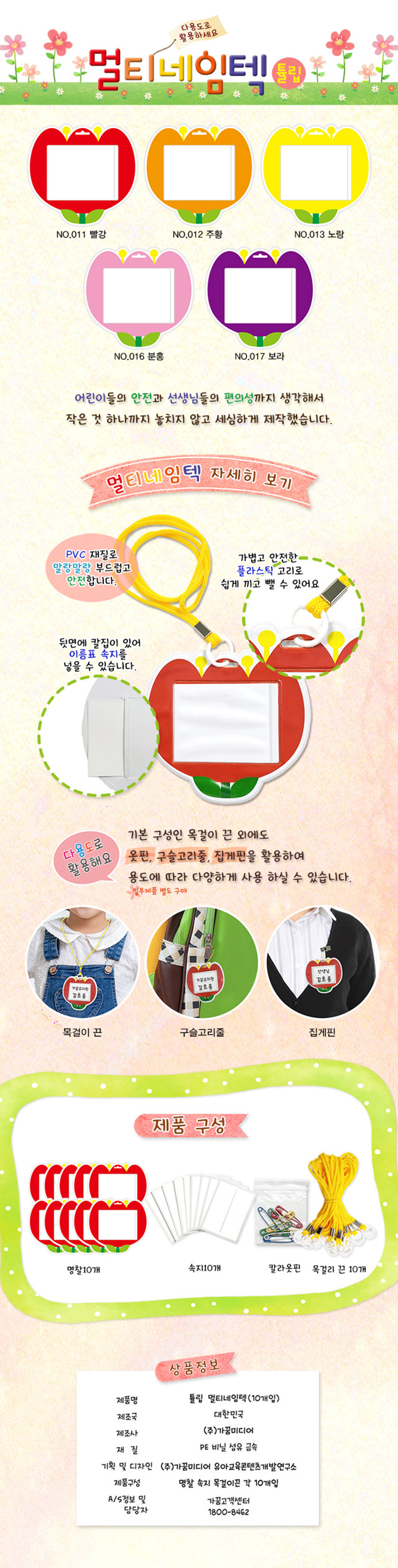 튤립 다용도 명찰 멀티네임텍 이름표