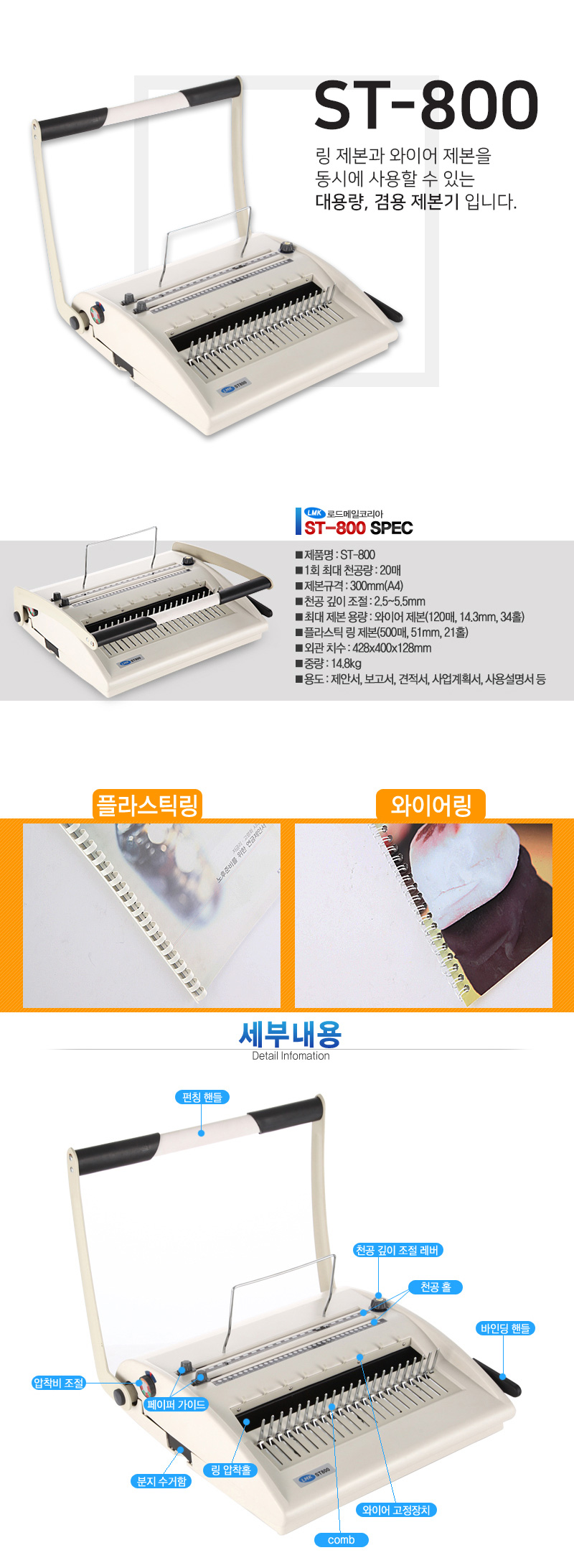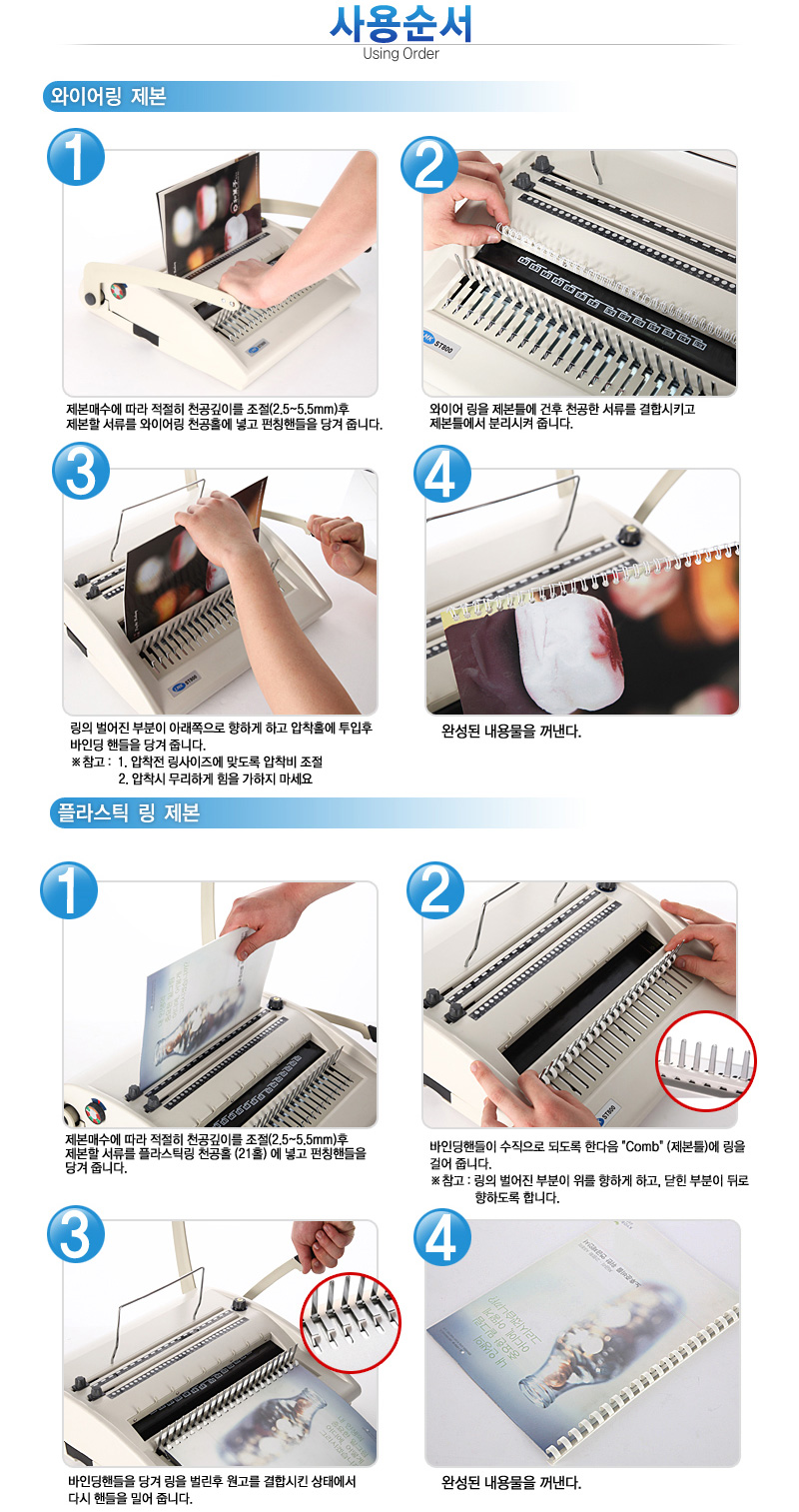 로드메일코리아 겸용제본기 플라스틱링 와이어링 ST-800 표지100매/링100개 증정