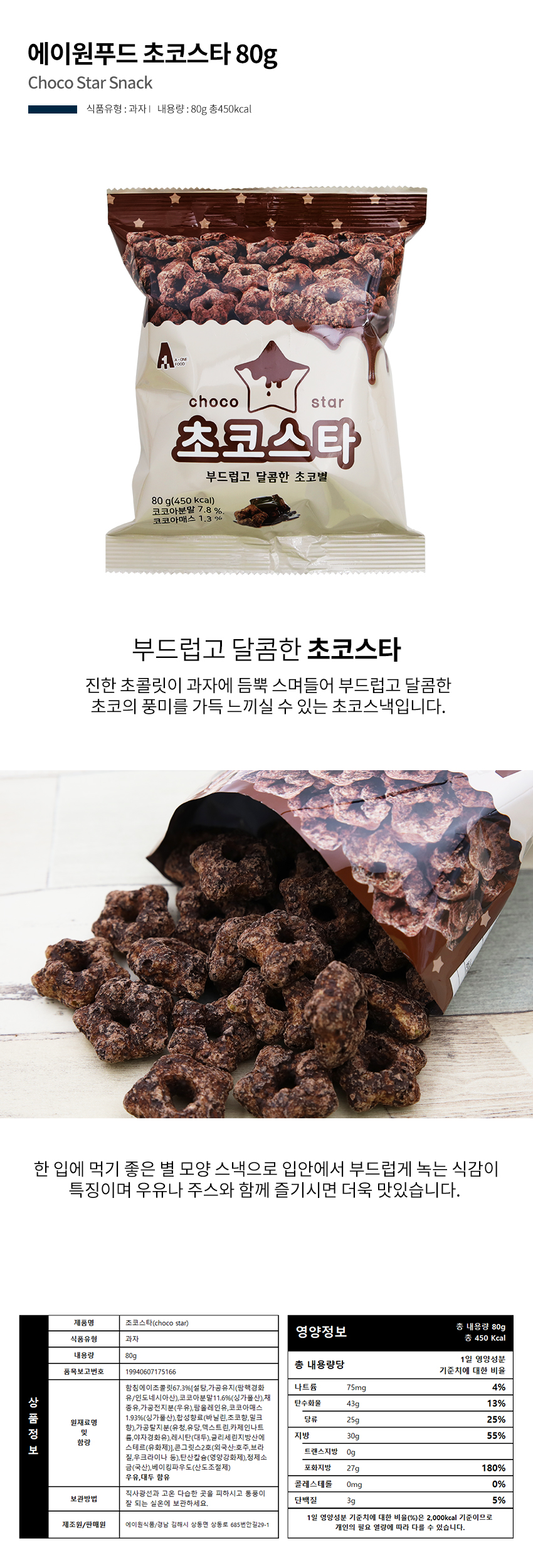 에이원푸드 초코스타 80g
