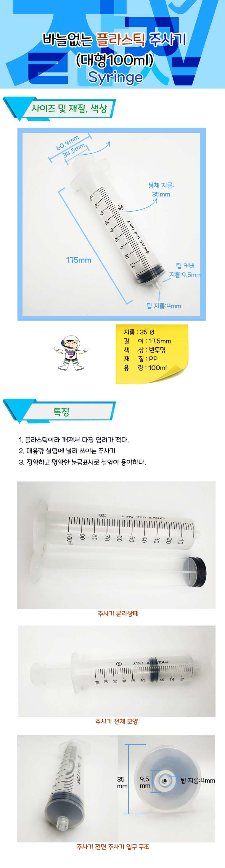 바늘없는 플라스틱 주사기(대형100ml)