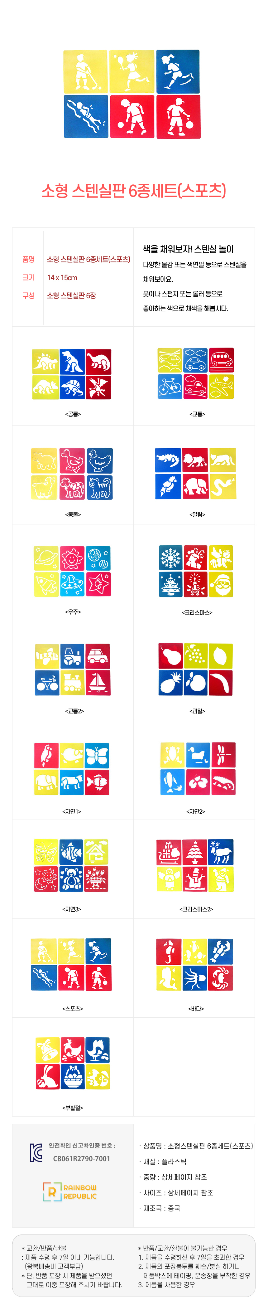 레인보우리퍼블릭 소형 스텐실판 6종 세트 (스포츠)