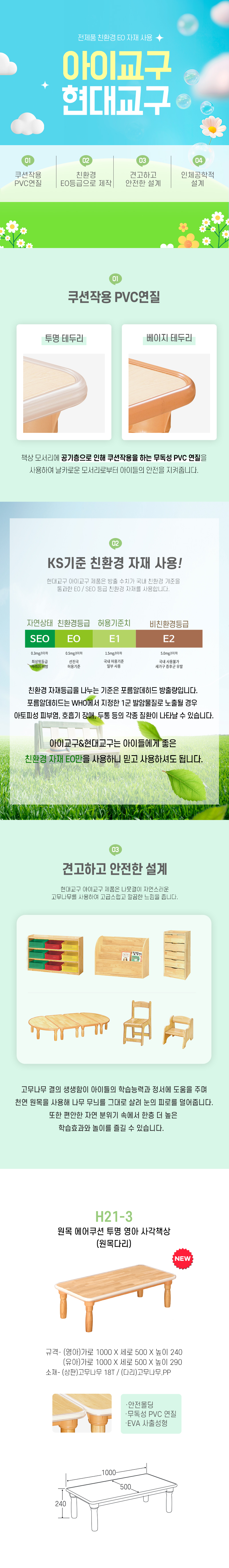 H21-3 원목 에어쿠션 투명 영아 사각책상(원목다리)