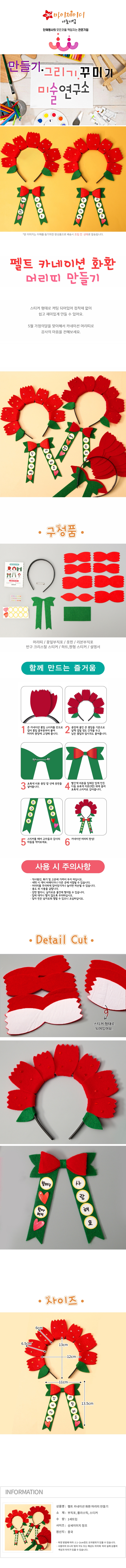 어버이날 만들기 부직포 카네이션 화한 머리띠 만들기set