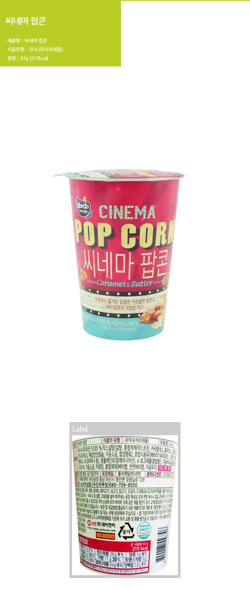 커널스 씨네마 팝콘 카라멜 버터맛 43g