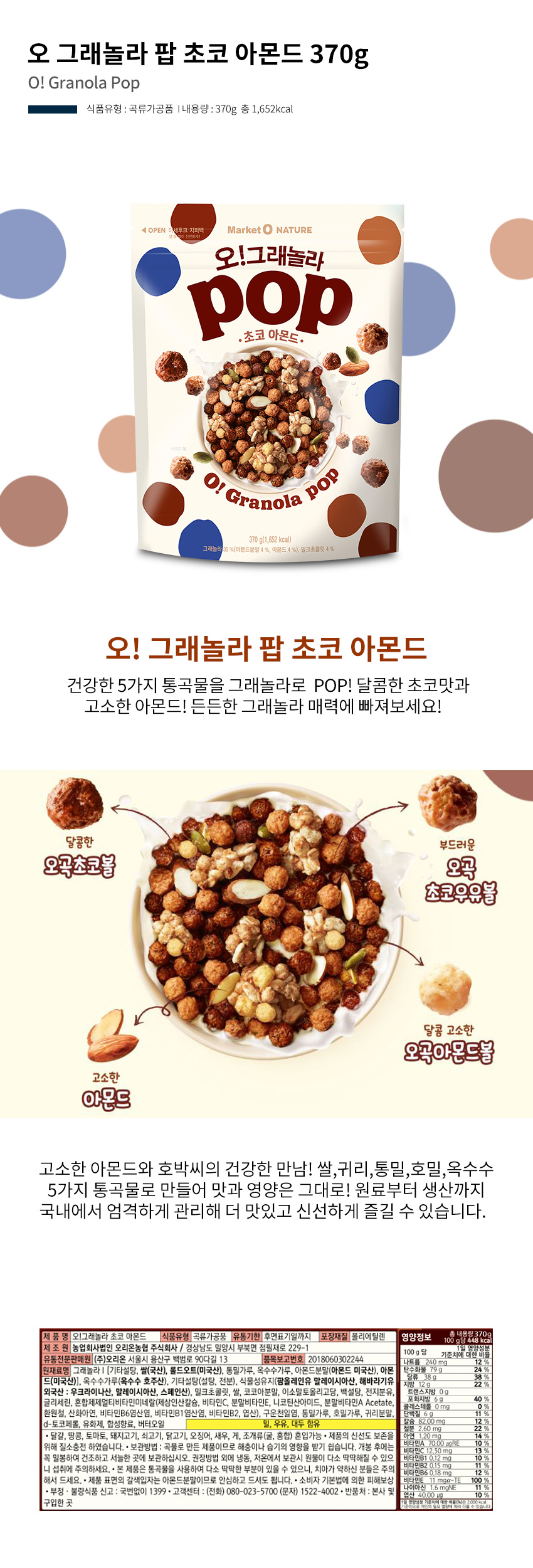 오 그래놀라 팝 초코 아몬드 370g