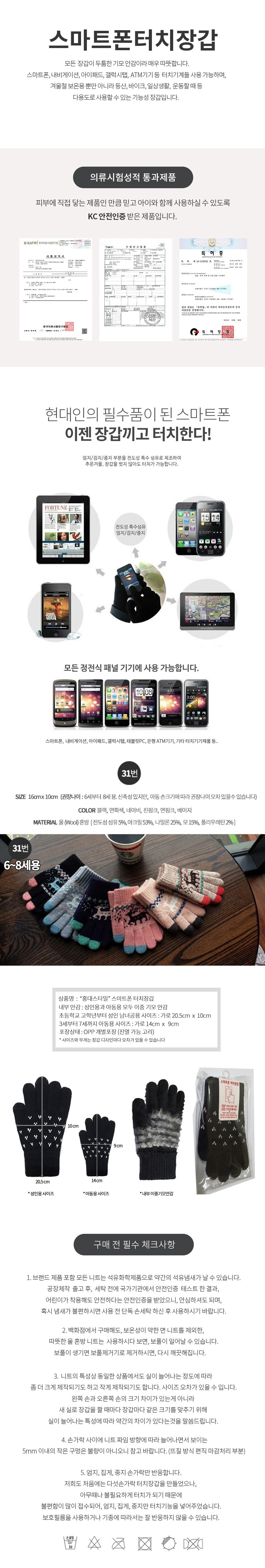 스마트폰 터치장갑- 31번/6~8세용/기모안감/겨울철 보온, 방한