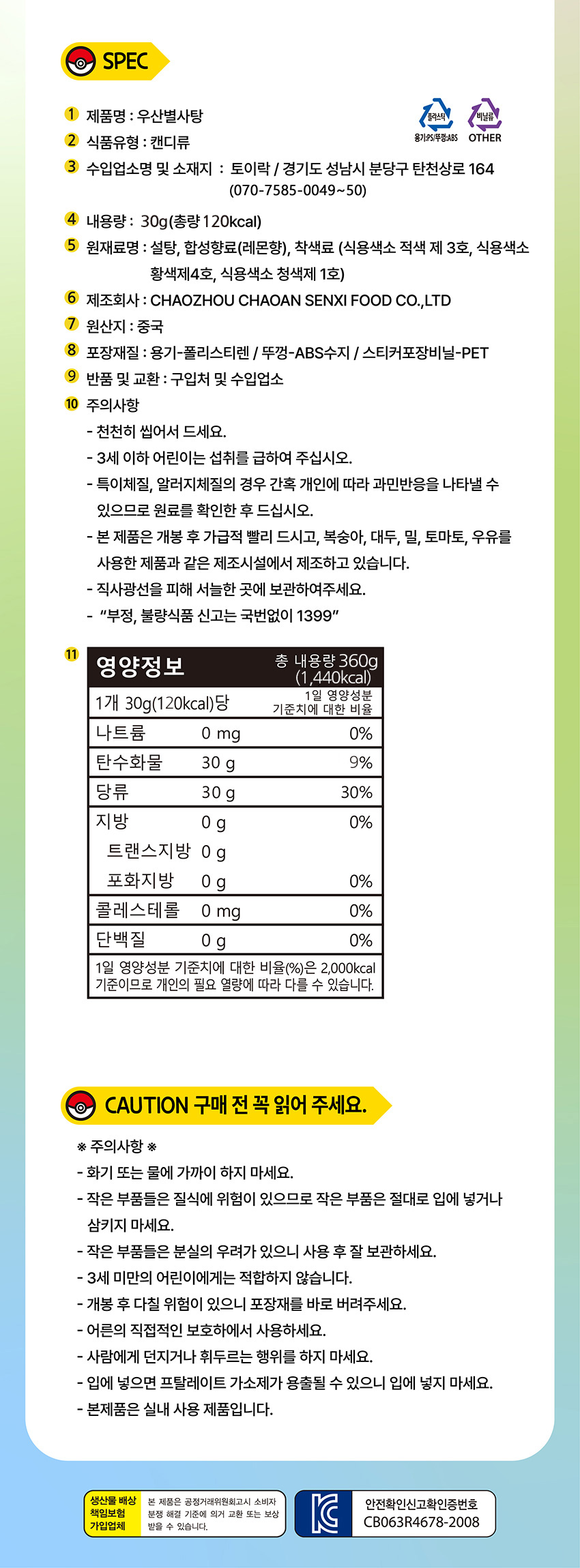 포켓몬 우산별사탕 30g (색상랜덤)