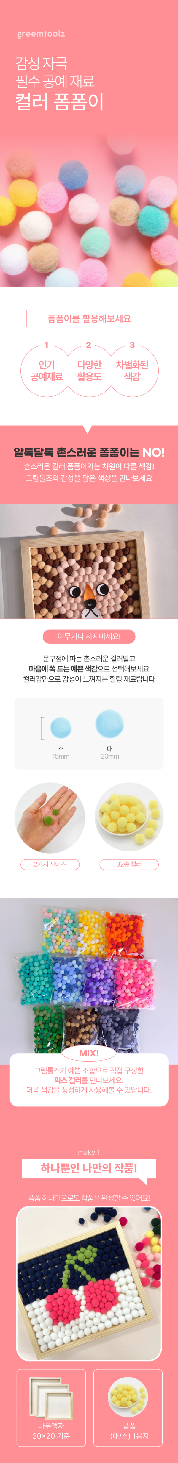 #폼폼이 뿅뿅이 솜공 솜방울 파스텔 혼합 믹스 대용량