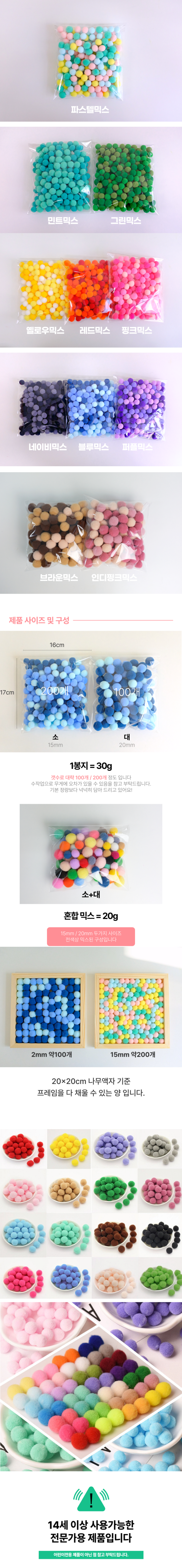 폼폼이 뿅뿅이 솜공 솜방울 파스텔 혼합 믹스 30g