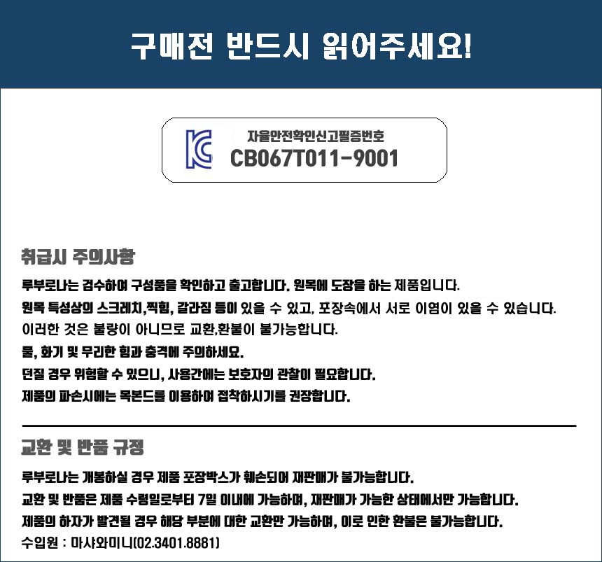 ※ 상품정보에 별도 기재된 경우, 아래의 내용보다 우선하여 적용됩니다.
