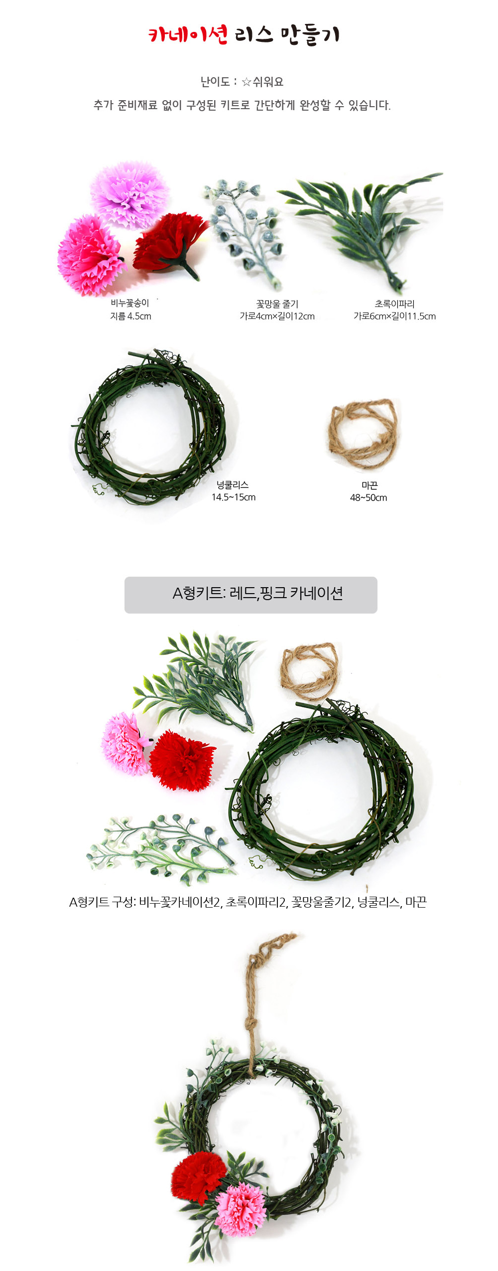 카네이션 리스 만들기(어버이날 중학교만들기)