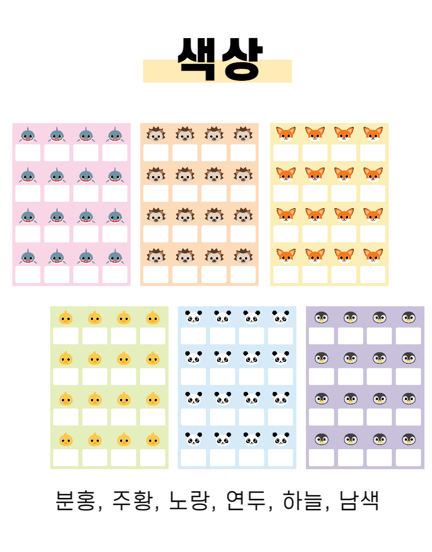 [주주쌤] 동물 이름표(세로형)