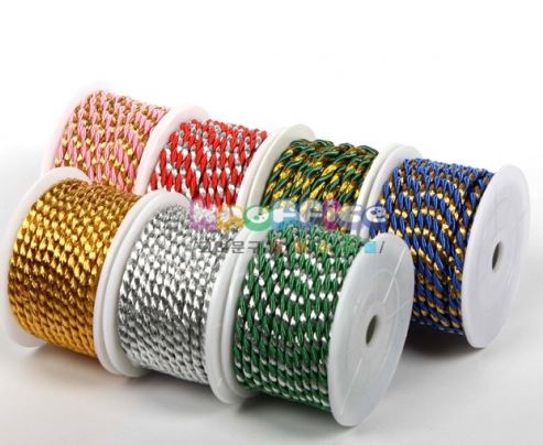 단색과 금사 또는 은사를 꼬아서 만든 제품입니다.