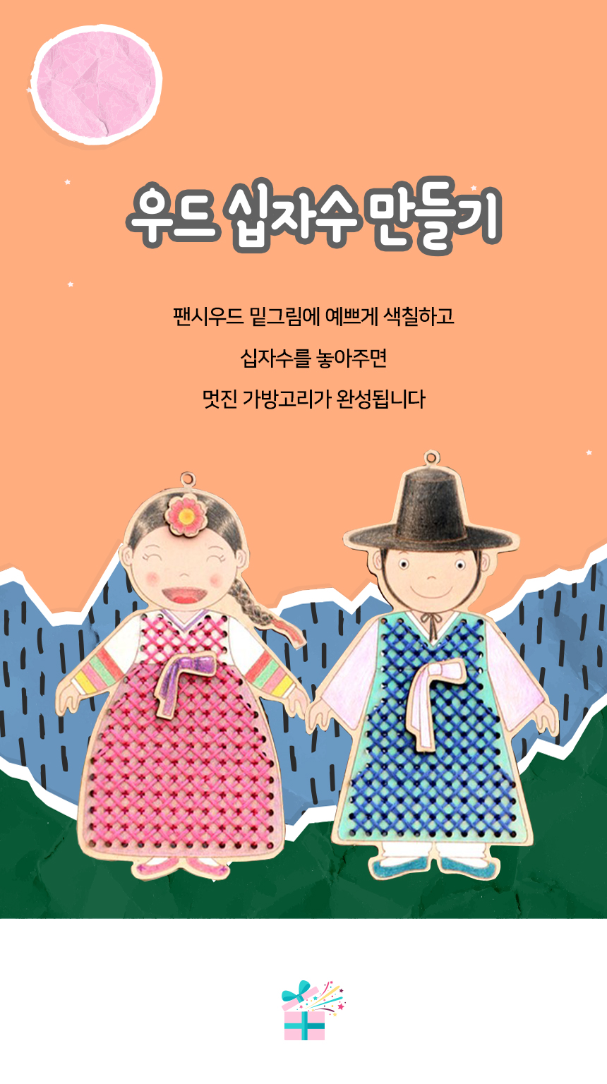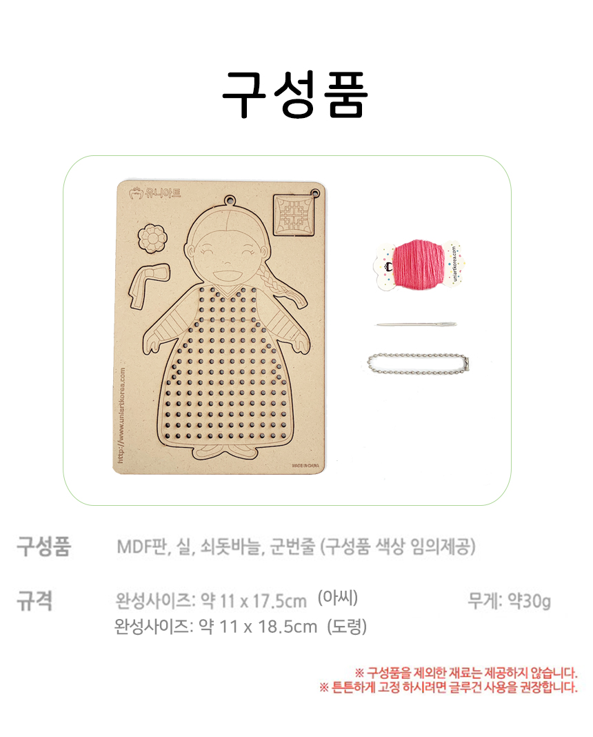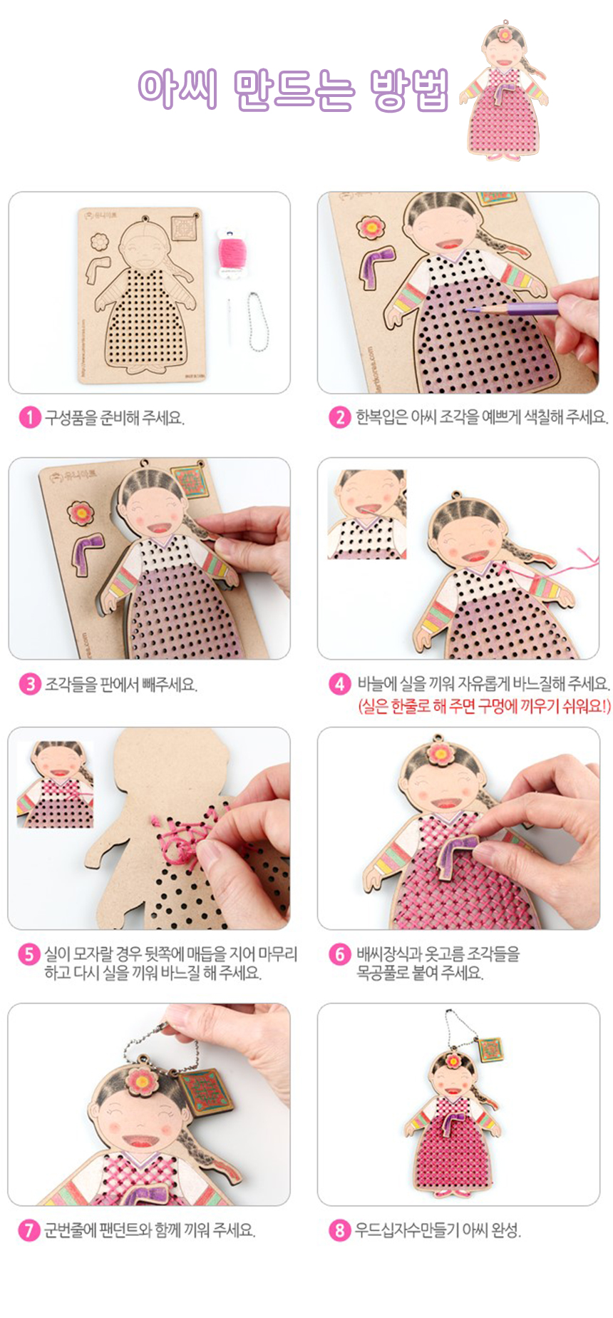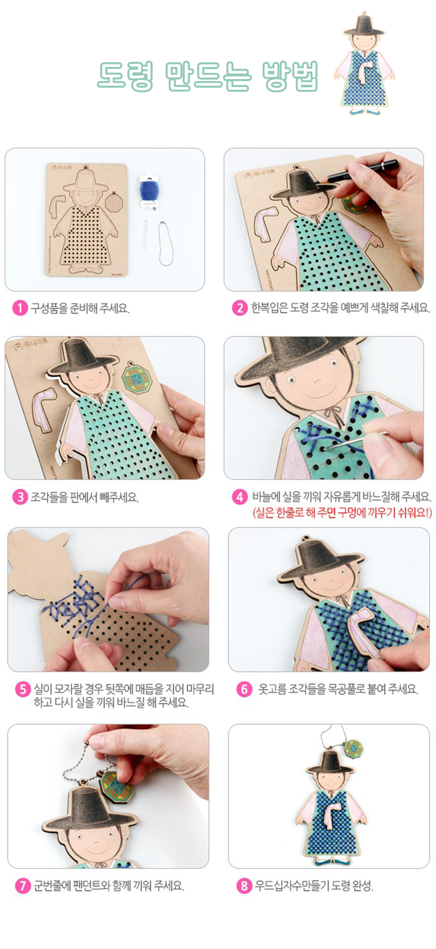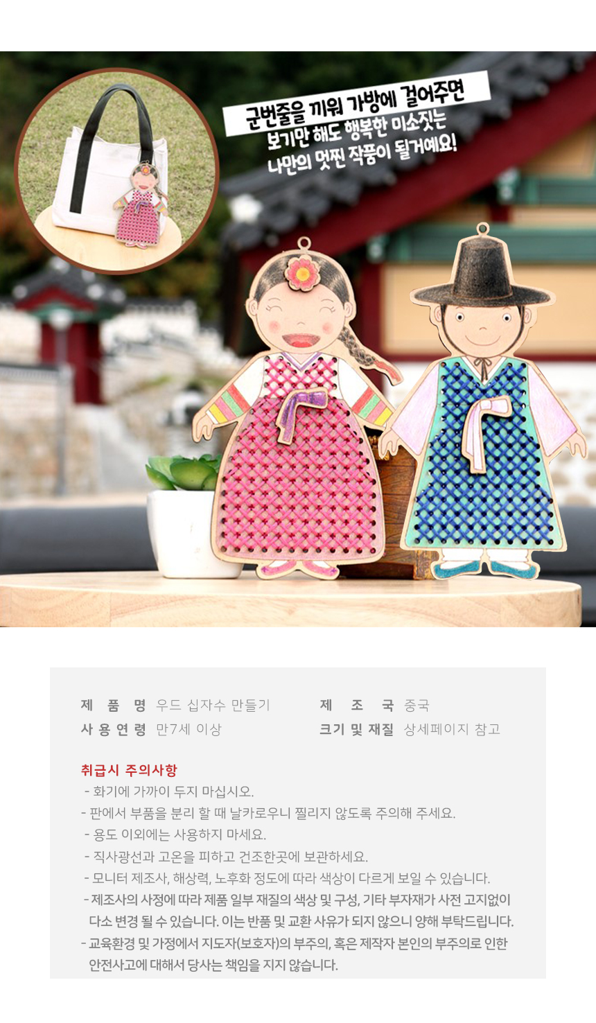 우드십자수 실꿰기 아씨 도령 가방고리 DIY 어린이 초등 만들기