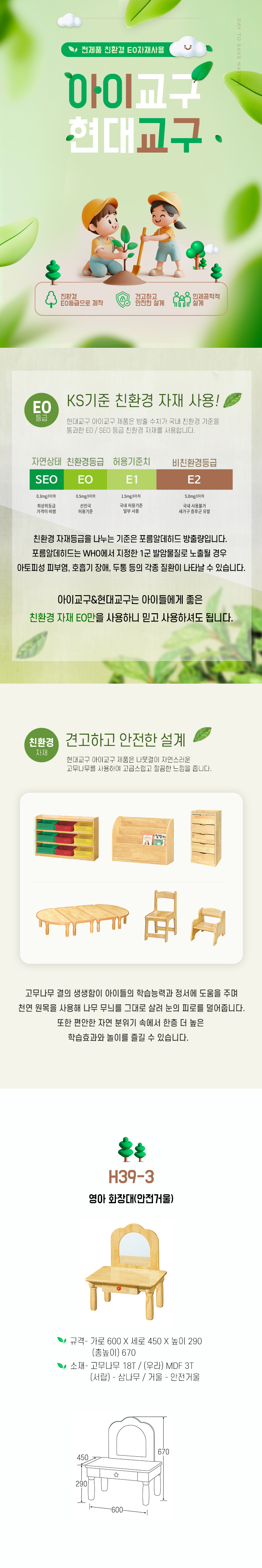H39-3 원목 영아 화장대 안전거울 포함