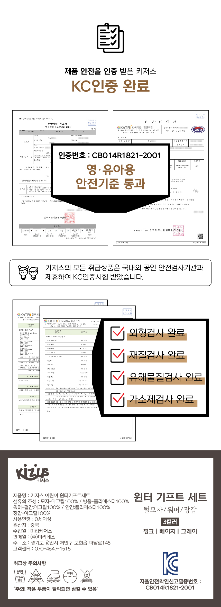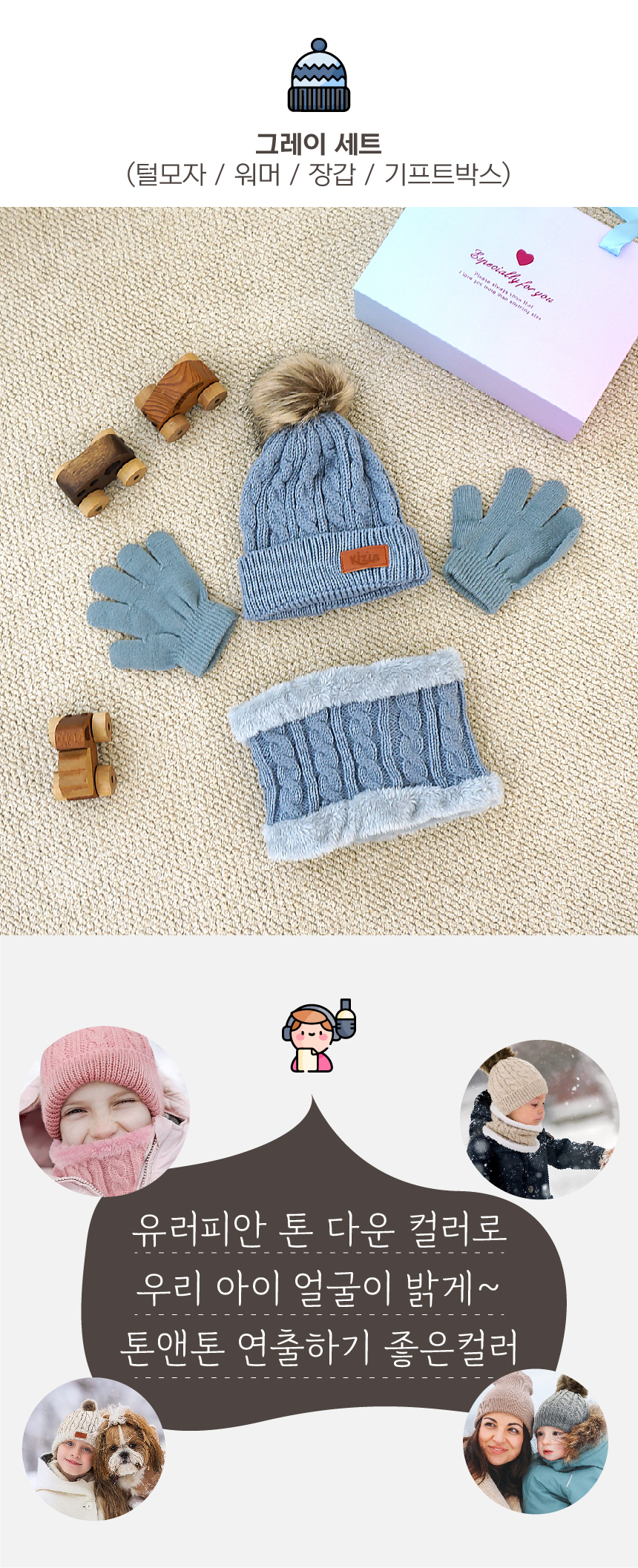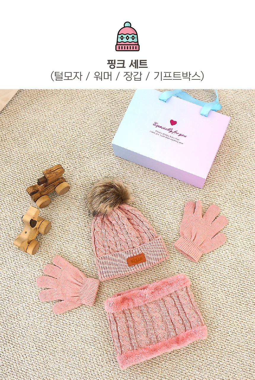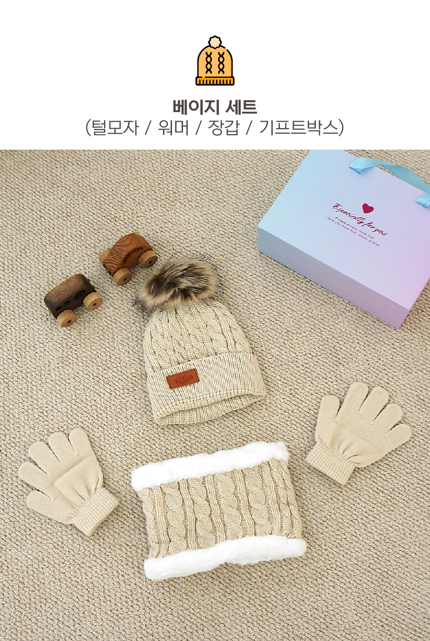 키저스 아기 유아 겨울 방한모자 넥워머 장갑 3종 기프트 목도리 선물세트