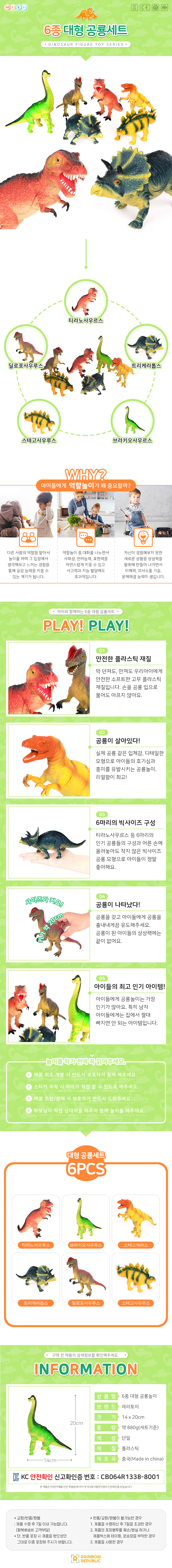 레인보우리퍼블릭 6종 대형 공룡 세트
