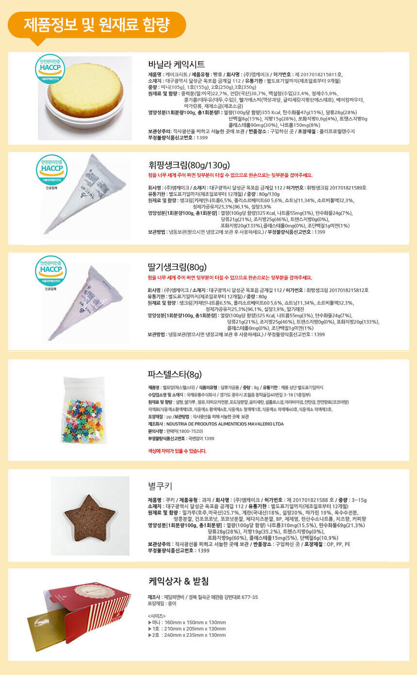 비식품(상자&받침, 칼, 데코레이션)은 먼저 보내드릴 수도 있습니다