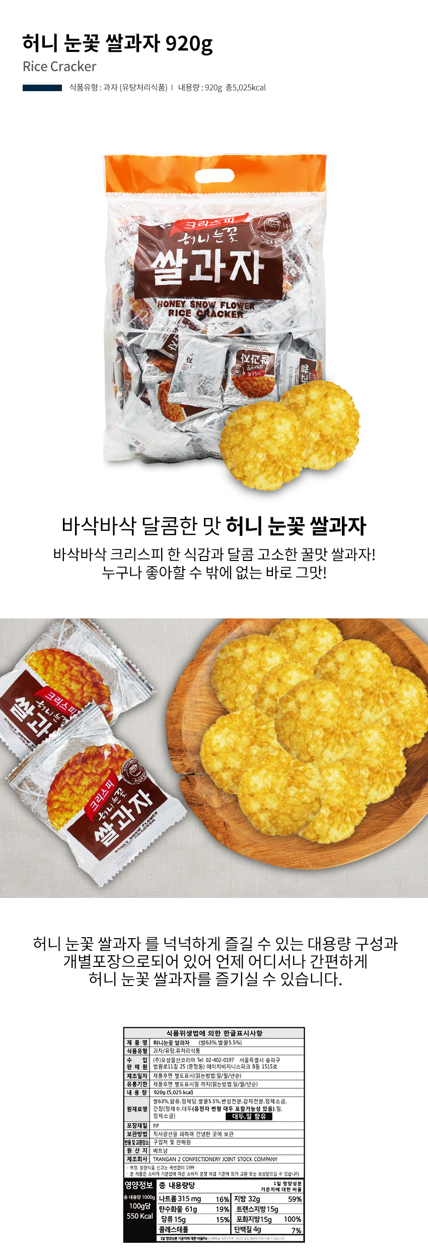 허니 눈꽃 쌀과자 920g