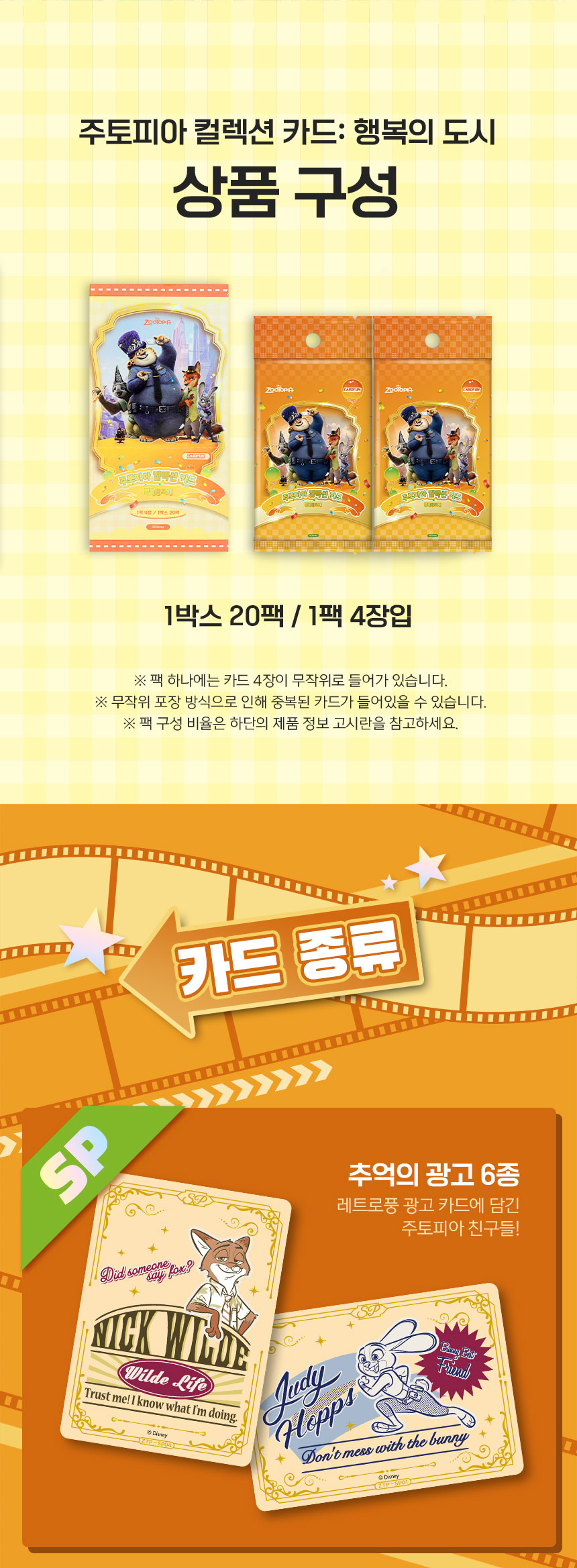 디즈니 주토피아 행복도시 컬레션 카드 20팩 1박스