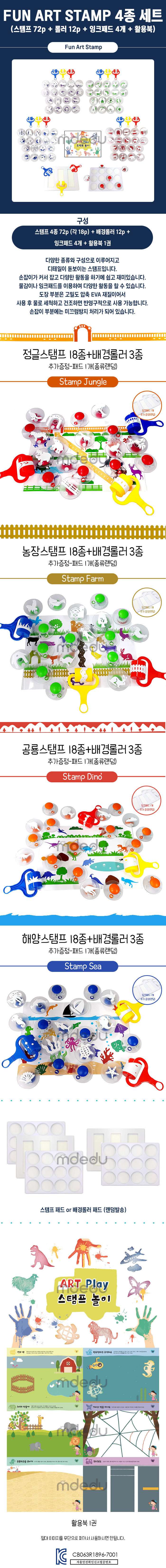 edx 펀아트 스탬프 4종 베이직세트 (스탬프72p+롤러12개+패드4개+활용북) 공룡 농장 해양 정글
