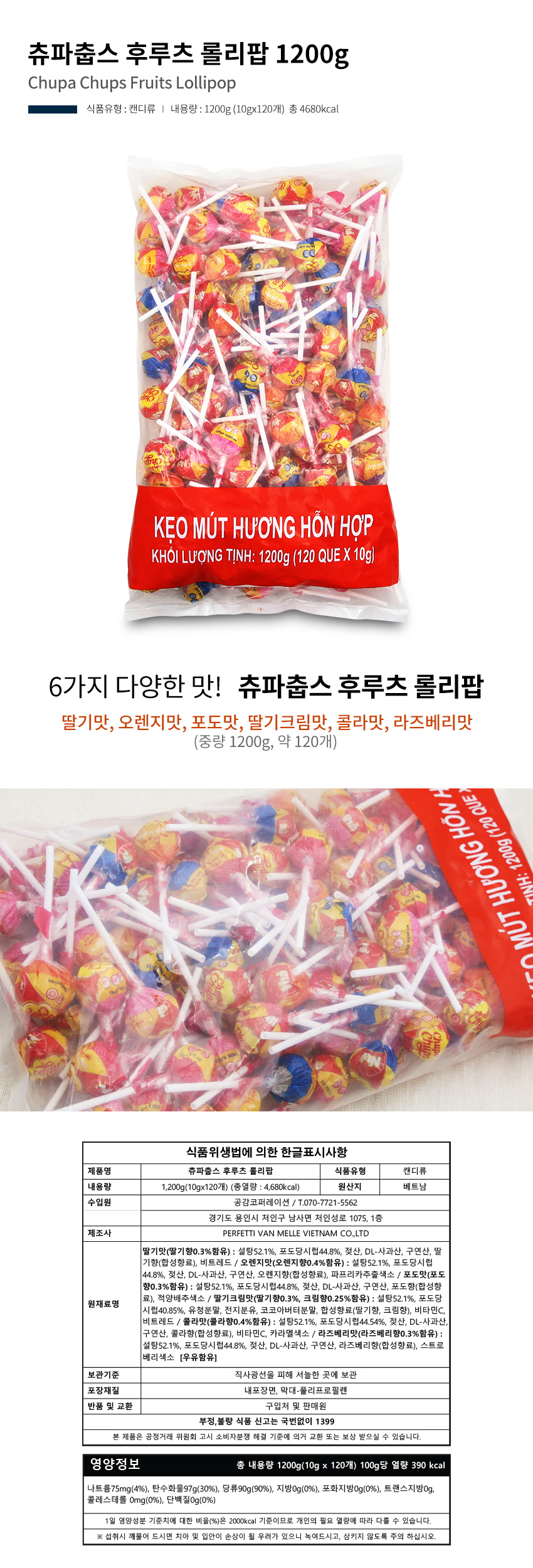 츄파춥스 후루츠 롤리팝 1200g (10gx120개)
