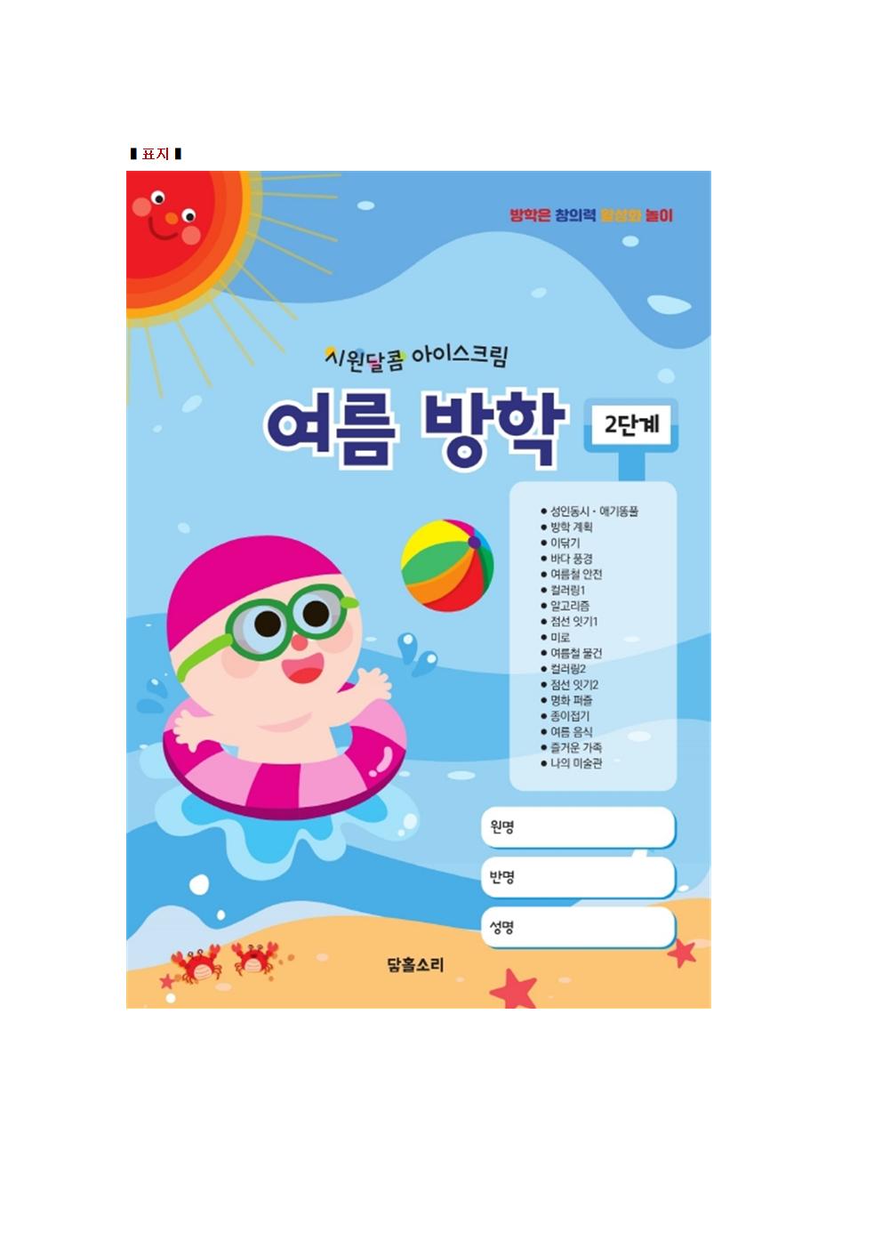성인동시, 방학계획표, 이닦기, 색칠하기, 그림자 찾기, 여름철안전,