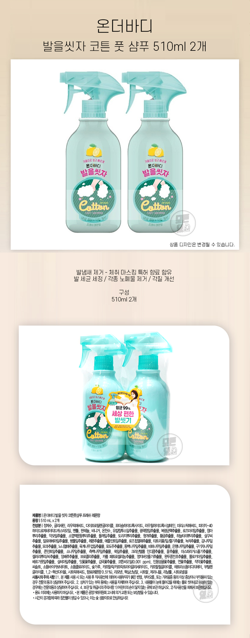온더바디 발을 씻자 코튼 풋 샴푸 510ml 2개 발샴푸 발씻기 발냄새 제거