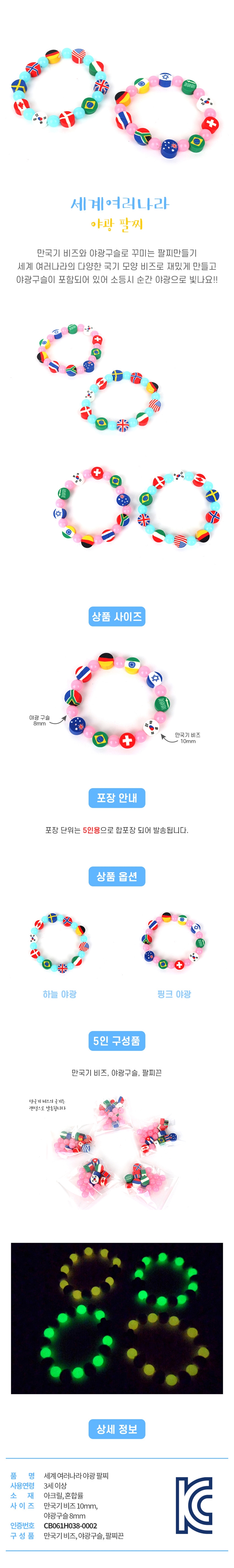 세계 여러나라 만국기 야광 팔찌 만들기 2색 (5인용)