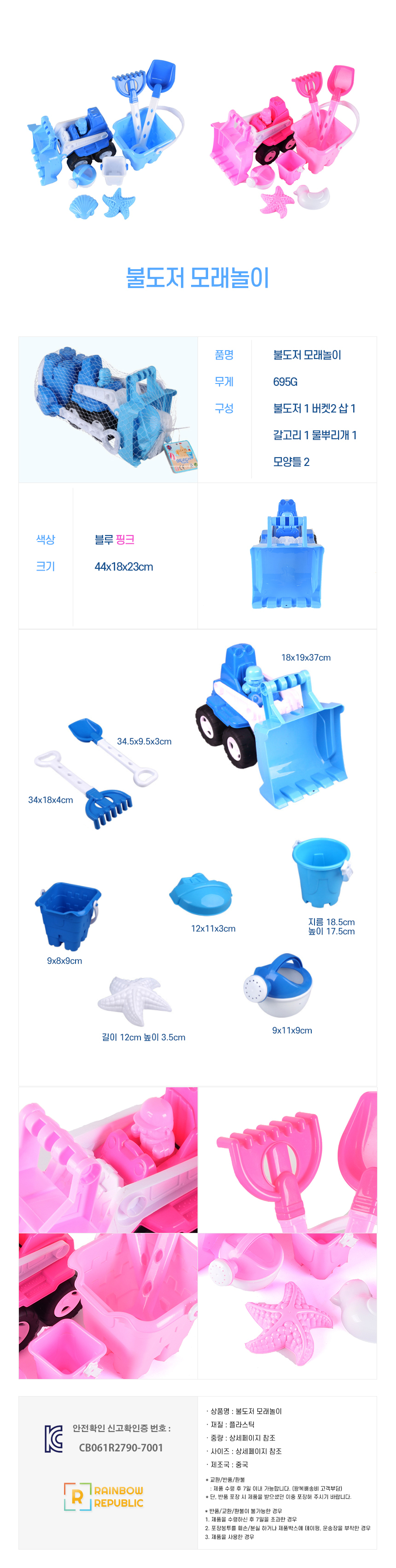 레인보우리퍼블릭 불도저 모래놀이(핑크)