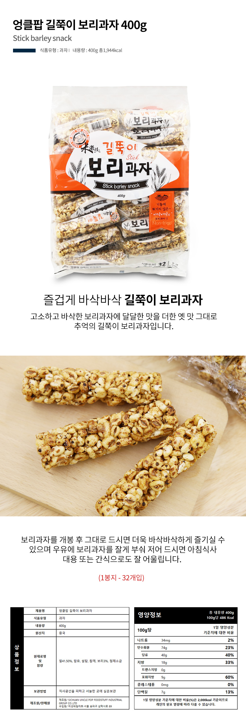 엉클팝 길쭉이 보리과자 400g