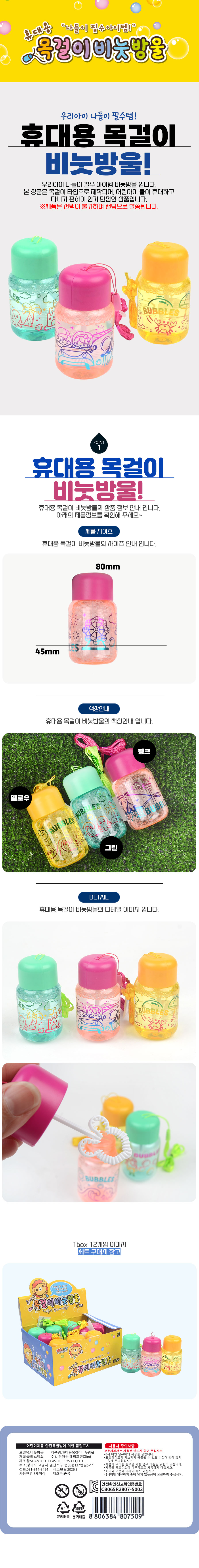 휴대용 목걸이 비눗방울 1p 비누방울 버블스틱
