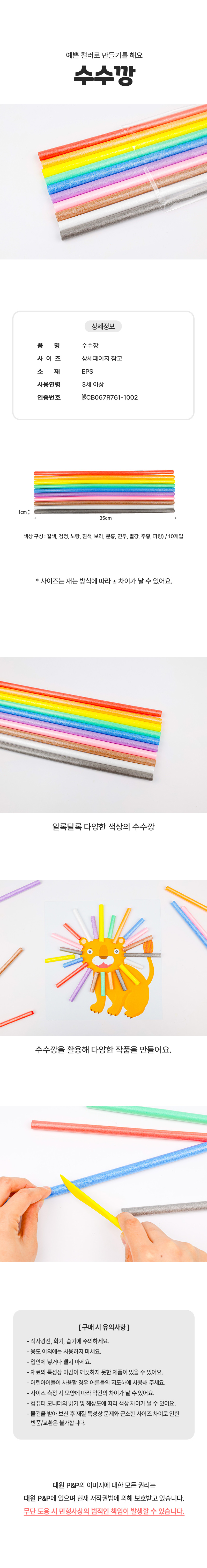 [대원피앤피] 수수깡 10색 세트 만들기 재료(갈색/검정/노랑/흰색/보라/분홍/연두/빨강/주황/파랑)