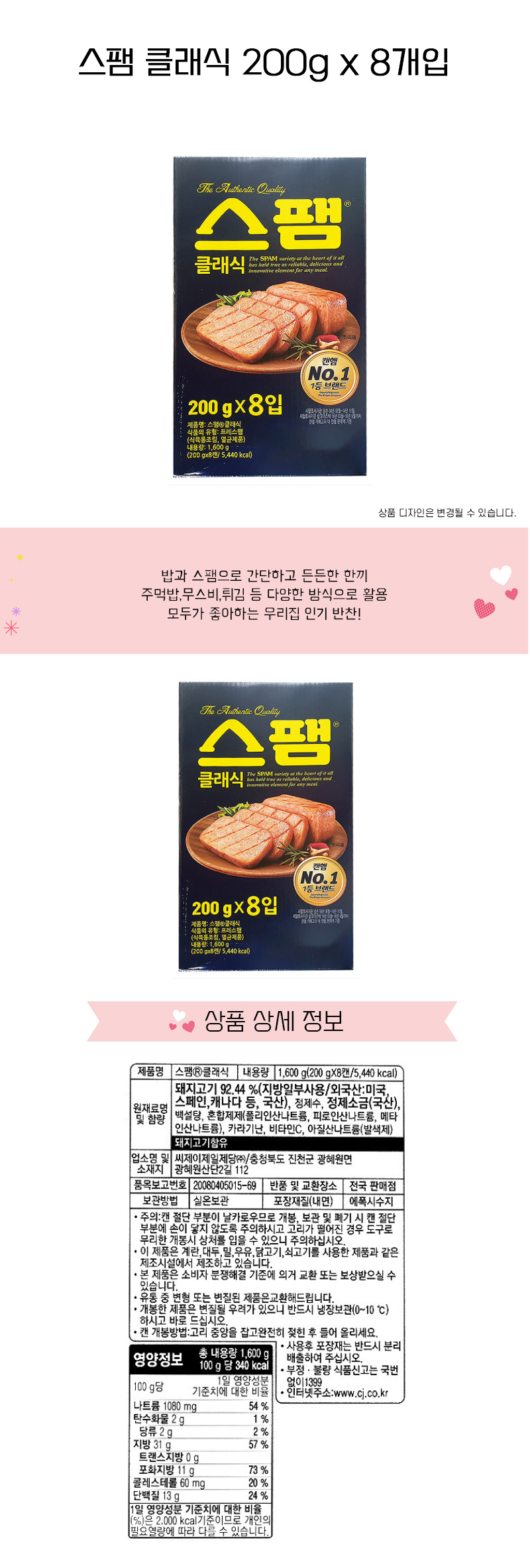 스팸 클래식 200g 8입 햄 부대 찌개 볶음밥 재료 통조림