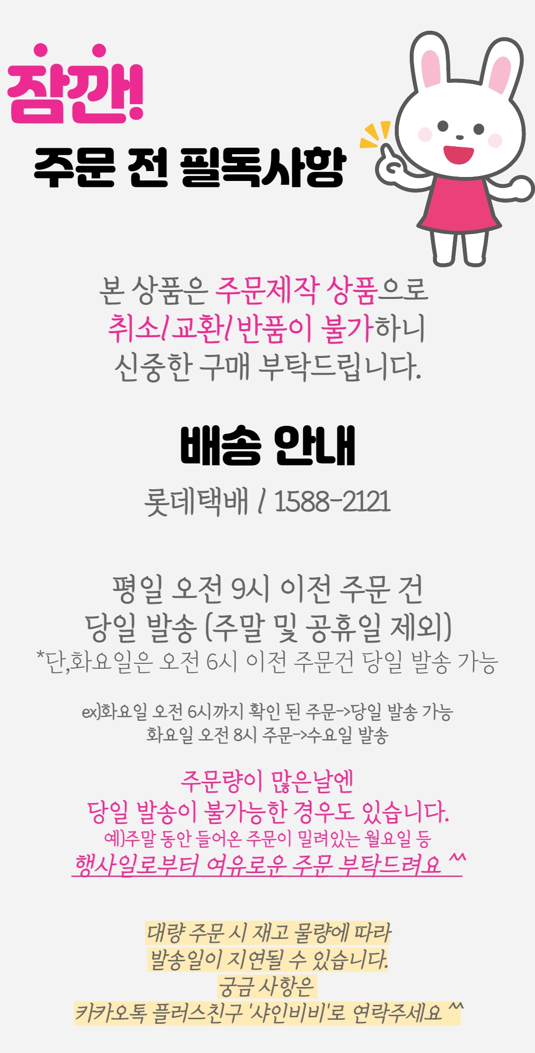 주문 제작 상품으로 반품/교환/환불 불가합니다.
